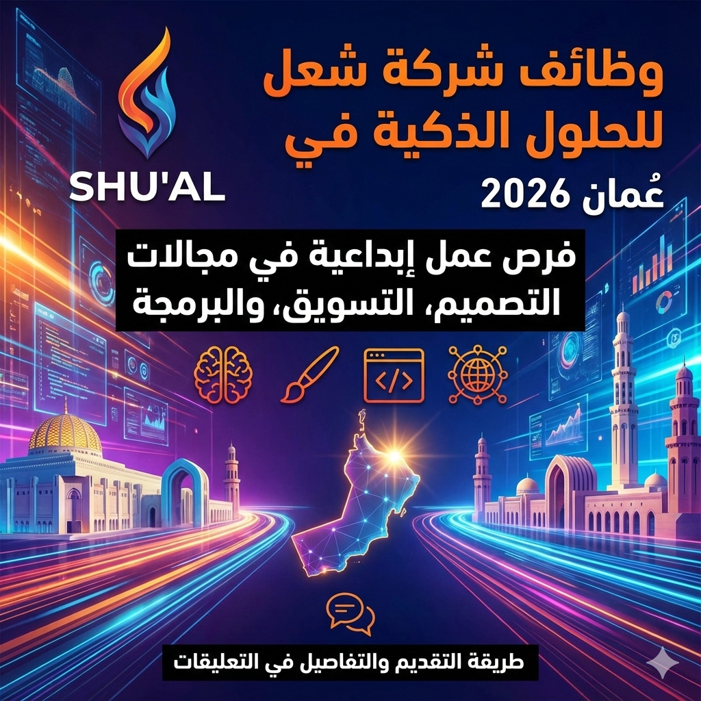 وظائف شركة شعل للحلول الذكية، وظائف شعل في عمان، فرص عمل في عمان 2026، وظائف تصميم جرافيك عمان، وظائف تسويق رقمي عمان، وظائف مبرمجين في عمان، وظائف شركات تقنية في عمان
